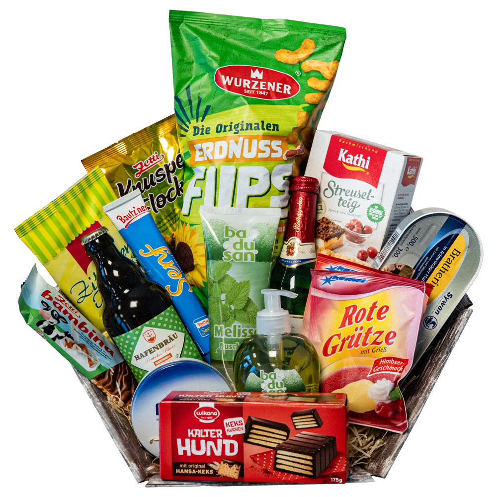 Der Präsentkorb „DDR“ ist das perfekte Geschenk für alle, die die Kultprodukte aus der ehemaligen DDR lieben oder neu entdecken möchten. Gefüllt mit originalen Ost-Klassikern und beliebten Spezialitäten weckt dieser Korb Erinnerungen an frühere Zeiten oder sorgt für eine spannende kulinarische Zeitreise.