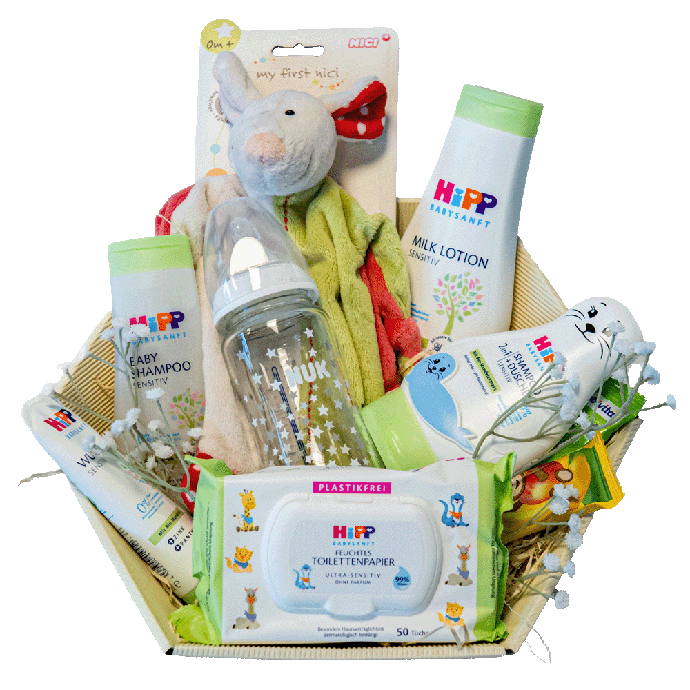 Ein neues Leben beginnt – und mit unserem liebevoll zusammengestellten Geschenkkorb „Zur Geburt“ machst du den frisch gebackenen Eltern und ihrem Baby eine besondere Freude. Der Korb ist gefüllt mit allem, was die Kleinsten für einen guten Start ins Leben brauchen und wird individuell auf deine Wünsche angepasst.